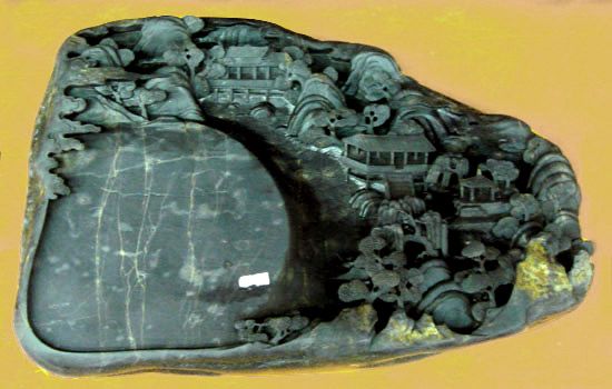 「老坑鉱脈は枯渇した」との根拠皆無の風評により老坑はもう無い、と思い込まされていた端渓愛好家や書家など佳硯を探し求められる方々に「老坑鉱脈」は健在であることを確認していただくため催行しました「老坑調査行」 、その何度目かの団を老坑現地へご案内した時この老坑が肇慶の老坑坑仔巖端硯廠に展示されていました。